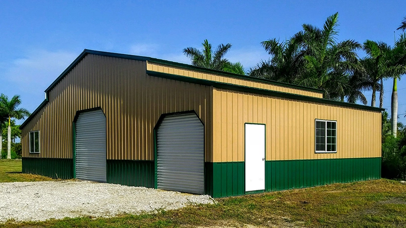 This 46x35x13 metal building is featured with one 12’x12′ roll up door, one 8’x7′ roll up door (both roll up doors have angle cut openings), one framed opening, two 36″x80″ walk doors, and a two-toned green and lightstone wainscot finish. Take advantage of our free delivery & installation! Every building is designed for your county’s local building codes and can be certified & stamped for heavy snow and wind load requirements. Each steel garage is built to last with American labor and precision. We take no short cuts as our steel buildings are manufactured using only the highest-quality protective colors and protective coatings. The sale price does not include site preparation or concrete work. These services are optional and available in most areas! Contact a building specialist today for more information about our 46×35 Monitor Barns.